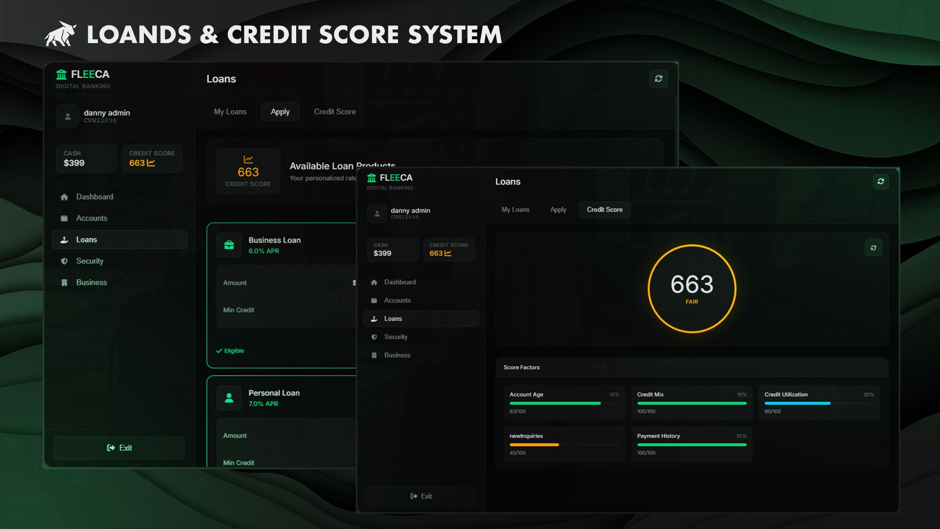 - FICO-Style Scoring — Dynamic 300–850 credit score